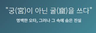 '굴(窟)'은 구멍이나 동굴을 뜻합니다. 사람들이 무의식중에 궁(宮) 대신 굴(窟)을 사용하는 이유는, 현대의 권력층이 머무는 공간이 화려한 대궐이라기보다는 폐쇄적인 동굴처럼 느껴지기 때문일지도 모릅니다.