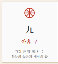 九(아홉 구)는 단순히 숫자 9를 의미하는 데 그치지 않습니다. 동양의 수비학에서 9는 한 자리 숫자 중 가장 큰 '양(陽)'의 수이며, 하늘의 높음과 세상의 끝을 상징합니다. 따라서 '구중'이란 인간이 도달할 수 있는 가장 깊고 높은 단계를 의미합니다.