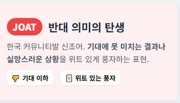 JOAT 뜻과 유래 완벽 정리 보기© 2025 Trend Dictionary. All rights reserved.