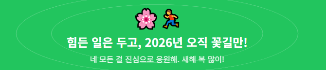 • "힘든 일은 작년에 다 두고 왔길 바래. 2026년엔 오직 꽃길만 달리길 내가 진심으로 응원할게. 새해 복 많이 받아!"