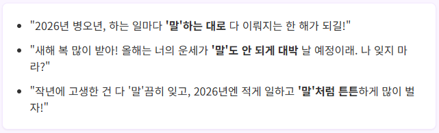 🐎 "병오년 기운 받아, 당신의 고민은 '순삭', 통장 잔고는 '떡상'하는 한 해 되세요!"
