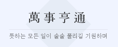 • 만사형통(萬事亨通): 모든 일이 뜻한 바대로 술술 풀림을 기원하는 마음