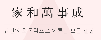 • 가화만사성(家和萬事成): 집안이 화목하면 모든 일이 잘 이루어짐