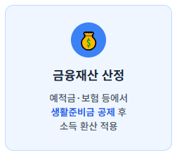 금융재산(예적금, 보험 등)은 생활준비금 공제(가구당 500만 원 등)를 거친 후 소득으로 환산됩니다. 2026년에는 이 생활준비금 공제 한도 역시 인상 논의가 포함되어 있어 저축액이 조금 있더라도 수급 자격을 유지하기 수월해졌습니다.