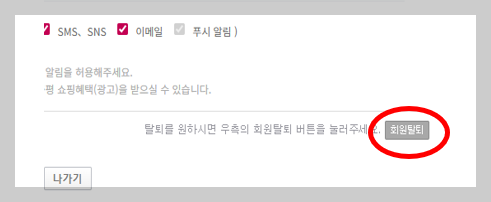 5단계: 탈퇴 안내 페이지에서 '탈퇴 신청' 버튼 클릭