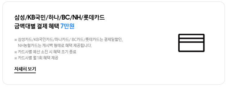 - 신용카드 결제 혜택: 100만 원 이상 결제 시 최대 70,000원의 추가 할인 혜택이 제공됩니다.