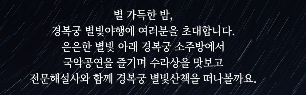 - 전문 해설사와 함께하는 경복궁 별빛 산책으로 궁궐의 아름다움을 느낄 수 있습니다.