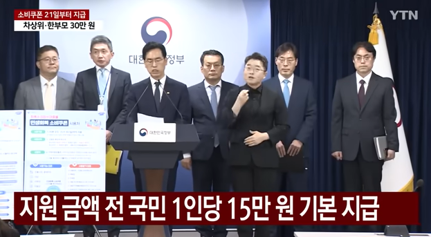- **기본 지급**: 전 국민 1인당 15만 원