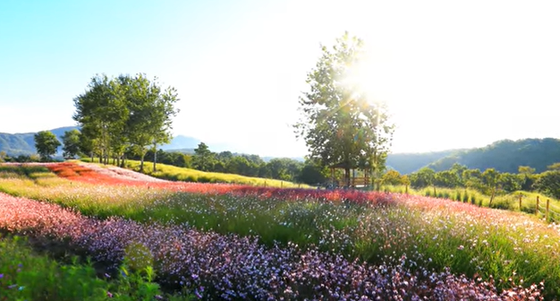 영원한 사랑을 의미하는 **천일홍**과 가을 감성을 더하는 **핑크뮬리**의 분홍빛 물결 역시 주요 볼거리입니다.