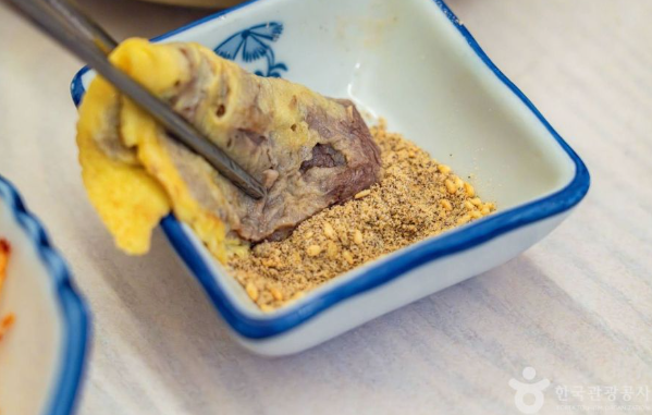 미미원의 육전은 국내산 한우 암소의 아롱사태를 사용하여 부드러운 식감과 깊은 맛을 자랑합니다. 숙련된 직원분이 직접 테이블에서 먹는 속도에 맞춰 한 점 한 점 정성스레 구워주시기에, 마지막 한 점까지 따뜻하고 부드러운 육전을 즐길 수 있습니다. 육전 본연의 풍미를 느끼고 싶다면 소금에 살짝 찍어 먹는 것을 추천하며, 매콤한 파절임과 함께 곁들이면 육전의 고소함이 배가되어 더욱 다채로운 맛을 경험할 수 있습니다. 묵은지나 콩가루 소금과의 조합도 별미이니 꼭 시도해 보세요.