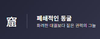 '굴(窟)'은 구멍이나 동굴을 뜻합니다. 사람들이 무의식중에 궁(宮) 대신 굴(窟)을 사용하는 이유는, 현대의 권력층이 머무는 공간이 화려한 대궐이라기보다는 폐쇄적인 동굴처럼 느껴지기 때문일지도 모릅니다.