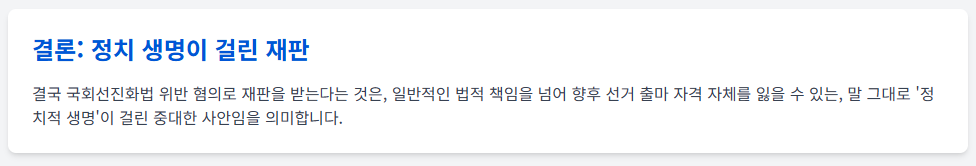 - 결론: 22대 국회의원직 수행에는 지장 없음