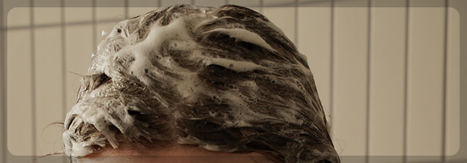- 손끝으로 부드럽게 두피를 마사지하며 샴푸를 발라줍니다.