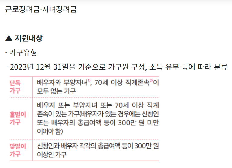 - 근로를 통해 소득을 얻는 경우에만 신청할 수 있으며, 자영업자도 해당됩니다.