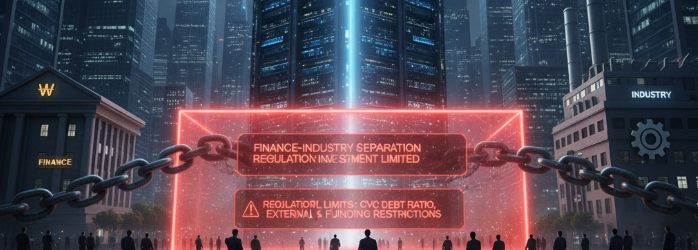 금산분리 완화 논의의 핵심에는 지주회사 벤처캐피탈(CVC)에 대한 규제 개선이 자리 잡고 있습니다. 현행 공정거래법상 지주회사의 CVC는 투자 목적회사를 설립할 수 없고, 오직 100% 완전 자회사 형태로만 운영되어야 하며, 부채비율도 자기자본의 200%를 초과할 수 없습니다. 또한, 총수 일가 지분 보유 기업이나 그룹 계열사, 상호출자제한기업집단 소속 회사에는 투자할 수 없는 등 엄격한 제약이 따릅니다.