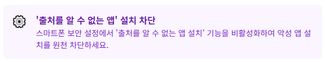 스미싱 문자에 포함된 링크를 눌렀을 때 악성 앱이 자동으로 설치되는 것을 막는 가장 효과적인 방법입니다. 특히 안드로이드 사용자는 이 기능을 반드시 비활성화해야 합니다.