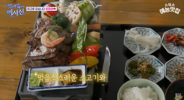 예능 '비서진'에서 이서진 씨가 극찬하며 더욱 유명해진 **한우 야채구이** 메뉴입니다.