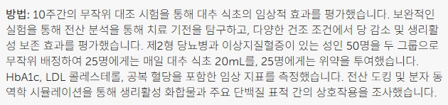 이는 식후 혈당이 급격하게 오르는 것을 막아 당뇨병 환자뿐만 아니라 혈당 관리가 필요한 분들에게 큰 도움이 됩니다.