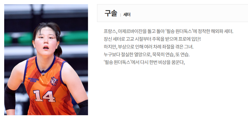 **원더독스**의 **구솔 선수**는 **181cm의 장신**을 가진 흔치 않은 세터로 기대를 받으며 V-리그에 입문했습니다. 하지만 부상과 치열한 경쟁, 그리고 미들 블로커로의 **포지션 변경**까지 겪으며 쉽지 않은 선수 생활을 이어갔습니다.