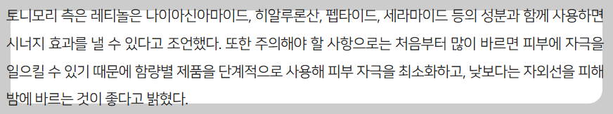 레티놀 제품을 사용할 때는 몇 가지 주의사항이 있습니다.