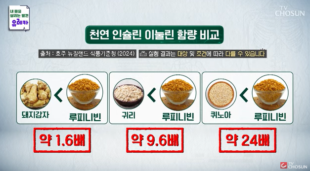 루피니빈에는 '이눌린'이라는 성분이 풍부하게 함유되어 있습니다. 이눌린은 '천연 인슐린'이라고도 불리며, 식후 혈당이 급격히 상승하는 것을 억제하고 혈당을 천천히 안정적으로 유지하는 데 도움을 줍니다. 이는 당뇨병 예방뿐만 아니라 이미 당뇨를 앓고 있는 분들의 혈당 관리에도 매우 효과적입니다.