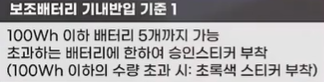 - 하지만 이번 개정으로 인해 보조배터리 반입 개수에 제한이 생겼으며, 배터리 외부에 용량이 명확히 표기되지 않은 경우에는 반입이 전면 금지됩니다.