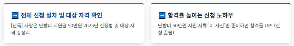 ➡️ 전체 신청 절차와 대상 자격이 궁금하다면? (메인 글로 링크) [단독] 사랑온 난방비 지원금 50만원 2025년 신청법 및 대상 자격 총정리