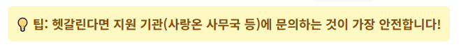 이제 중복 걱정은 덜고 신청할 준비가 되셨을 겁니다. 아직 **사랑온 난방비 50만원**의 **정확한 신청 방법**이나 **합격률을 높이는 서류 준비 팁**이 궁금하시다면, 아래 글에서 모든 정보를 확인하실 수 있습니다.