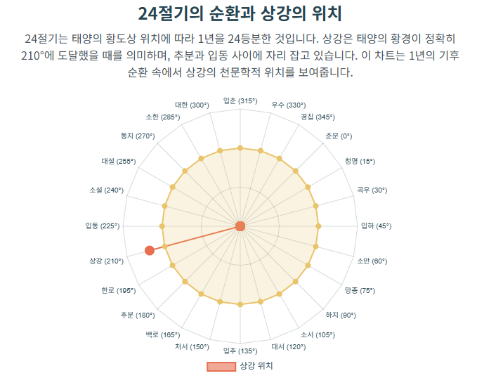 상강에 대한 모든 것, 전체 가이드 보러 가기2. 24절기 속 '상강뜻': 천문학적 위치와 의미