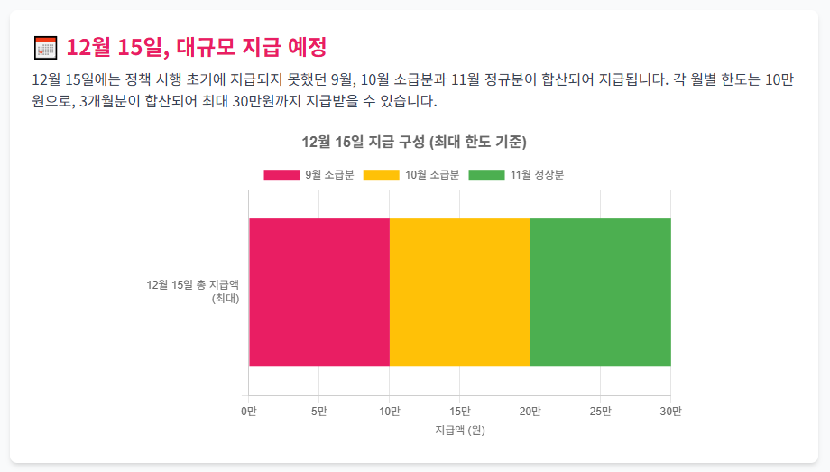 ⚠️ **주의:** 소급분도 월 최대 10만 원 한도 내에서 각각 계산되므로, 9월분 10만 원, 10월분 10만 원이 확정되었다면 최대 20만 원이 한 번에 지급될 수 있습니다.