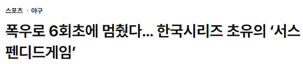 금번 한국시리즈에서 서스펜디드 게임이 된 이유