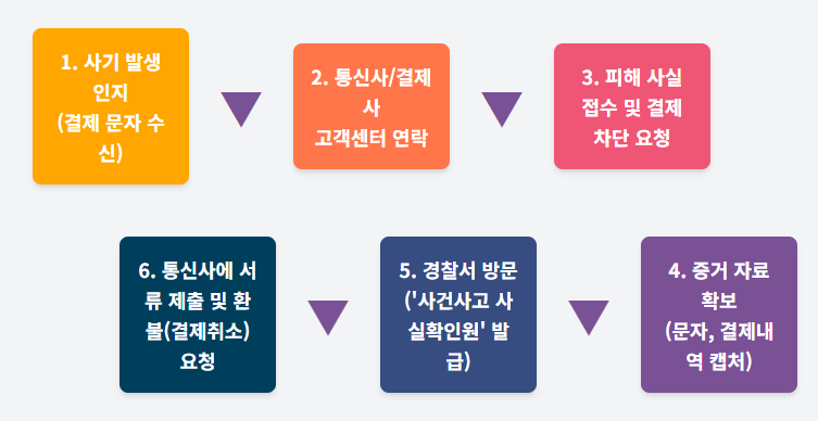 - A2. 그렇지 않습니다. 통신사 및 결제대행사, 그리고 경찰서 신고 절차를 밟으면 환불받을 가능성이 높습니다. 본문 3단계 절차를 참고하세요.