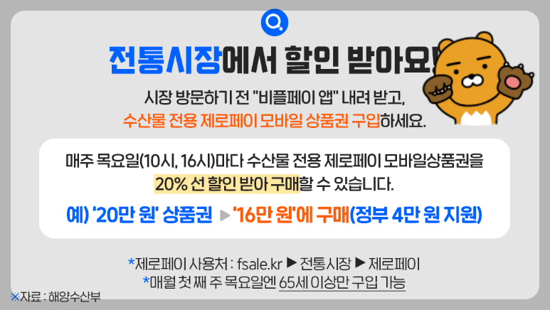 - 행사 기간 중 참여 업체에서 국내산 수산물 구매 시 할인 혜택 제공