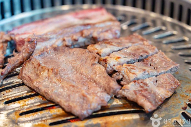 저희는 먼저 갈비살을 주문했습니다. 참숯 위에서 지글지글 익어가는 갈비살은 고소한 향을 풍기며 식욕을 자극합니다. 직원분께서 직접 맛있게 구워주셔서 가장 최적의 상태로 갈비살을 맛볼 수 있었는데요. 육즙이 가득하고 부드러운 갈비살은 입안에서 사르르 녹아내리며 환상적인 맛을 선사했습니다.