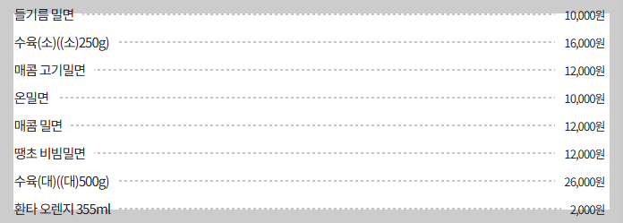 | 대표메뉴 | 밀면(물/비빔), 왕만두 |