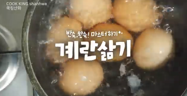 가장 중요한 핵심 정보입니다. 계란을 찬물에 넣고 끓이다가 **물이 팔팔 끓기 시작하는 시점부터** 스톱워치로 시간을 재는 것이 정확합니다.