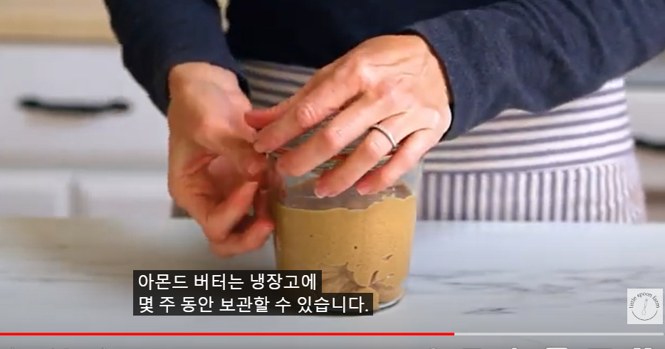 - 완성된 아몬드버터를 유리병에 담아 보관합니다.