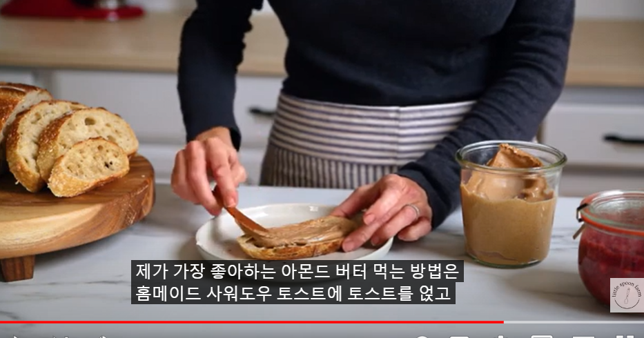 - 토스트: 아침 식사로 토스트에 아몬드버터를 바르고 과일을 올려 먹으면 맛있습니다.
