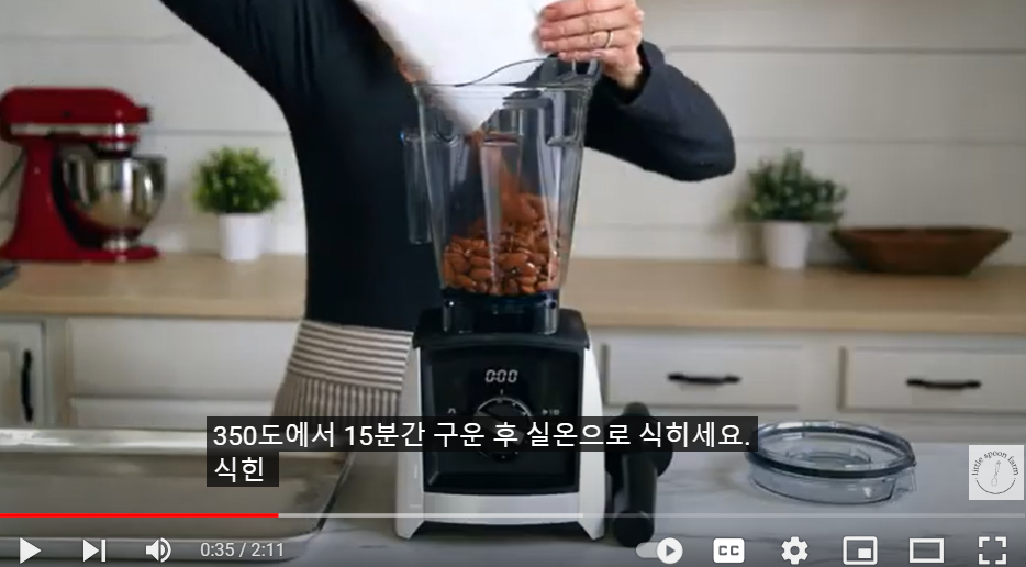 - 고온에서는 시간조절이 어려운 바, 오븐에 180도로 예열한 후 아몬드를 10-15분간 구워줍니다. (더 고소한 맛을 원한다면)