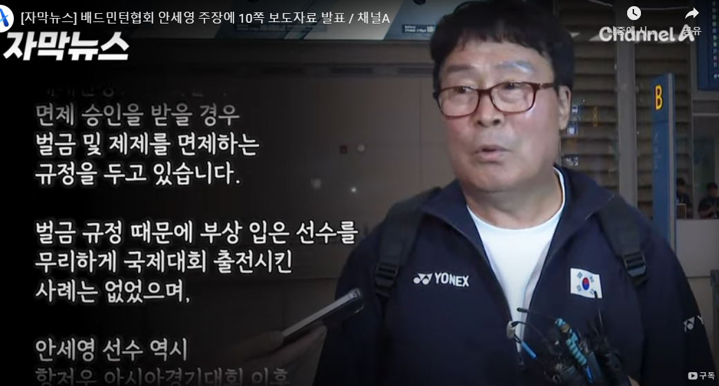- (경기력 관리를 위해) 개인 트레이너를 쓰고 싶다”는 안세영의 의견이 묵살됐다는 데 대해서는 “협회로 공식적으로 전달된 바 없다”라고 선을 그었다.