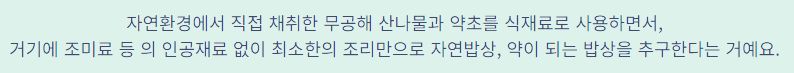 주요 메뉴: 명품송이돌솥밥, 명품보약돌솥밥, 해독약선돌솥밥, 송이오리백숙, 송이토종닭백숙 등