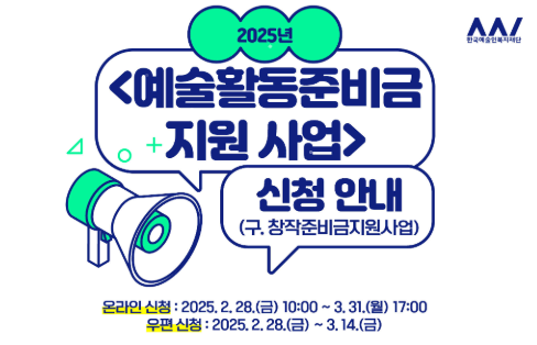 예술인의 창의성을 지키는 '25년 예술활동준비금' 예술인들이 경제적인 여건으로 인해 활동을 중단하지 않도록 하기 위해 준비된 자금 받아 가세요.