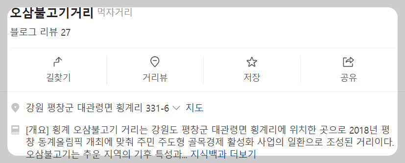 여행의 마지막은 횡계리 오삼불고기 거리에서 맛있는 음식을 즐기며 마무리하세요. 가을의 정취를 느끼며 맛있는 음식을 먹는 것은 최고의 힐링입니다.