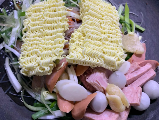 드디어 부대찌개 등장! 끓기 시작하는데, 냄새가 아주 그냥...🤤