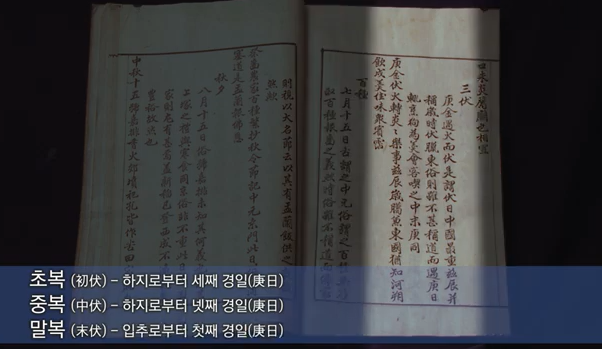 - 중복: 초복으로부터 10일 뒤에 옵니다. (하지 후 네 번째 경일)