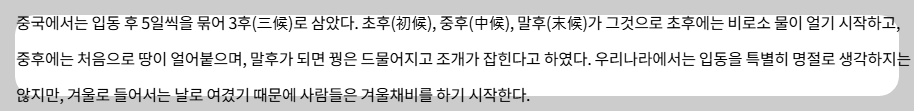 입동은 겨울의 시작을 알리는 중요한 절기입니다. 이 시기를 맞아 건강을 기원하는 전통 음식과 풍습을 즐기며, 겨울을 준비하는 것도 좋습니다. 앞으로 다가올 겨울, 따뜻한 마음과 함께 건강하게 보내시길 바랍니다!