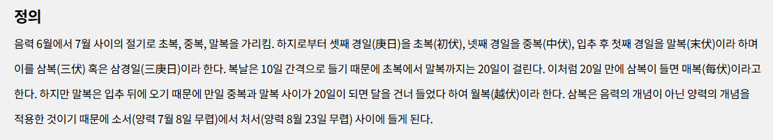 💡 잠시만요!삼복(三伏): 음력과 '경일(庚日)'을 따른 더위의 계절