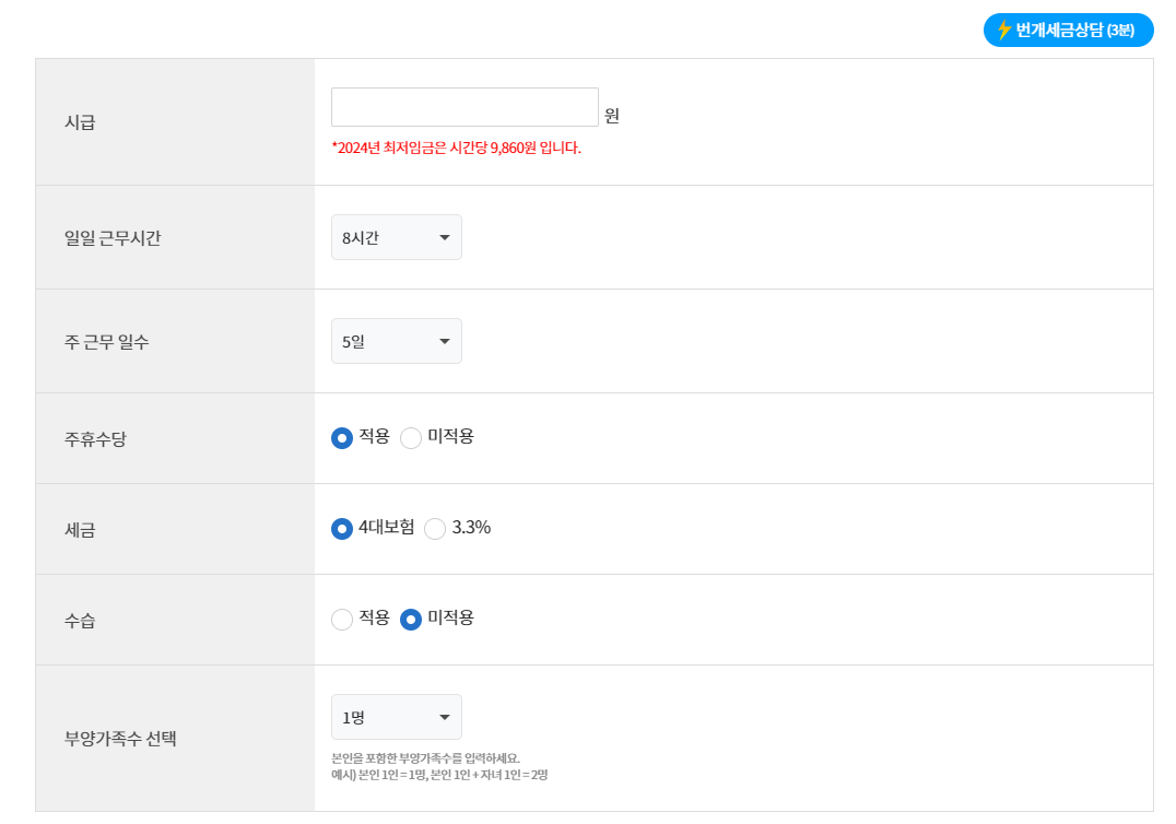 - 시급 입력: 자신의 시급을 입력합니다.