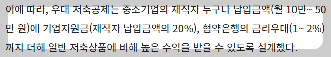 - 둘째, 기업의 지원금과 금리 우대를 통해 더 많은 이익을 얻을 수 있습니다.