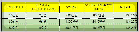 가입자는 매달 10만 원에서 최대 50만 원까지 저축할 수 있으며, 기업은 근로자가 납입한 금액의 20%를 지원합니다. 예를 들어, 근로자가 매달 50만 원을 저축하면, 기업은 10만 원을 추가로 지원하게 됩니다.